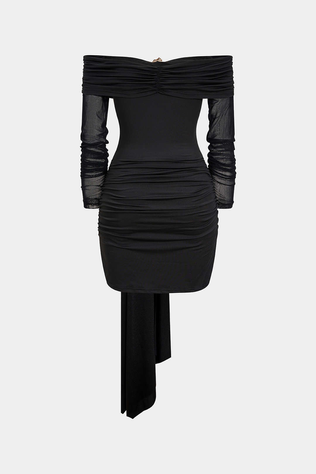Pürüzsüz ve şekillendirici bir dokuya sahip, yüksek kaliteli esnek kumaş, zarif bir görünüm için ince şeffaf kol detaylarıyla tamamlanmıştır.
