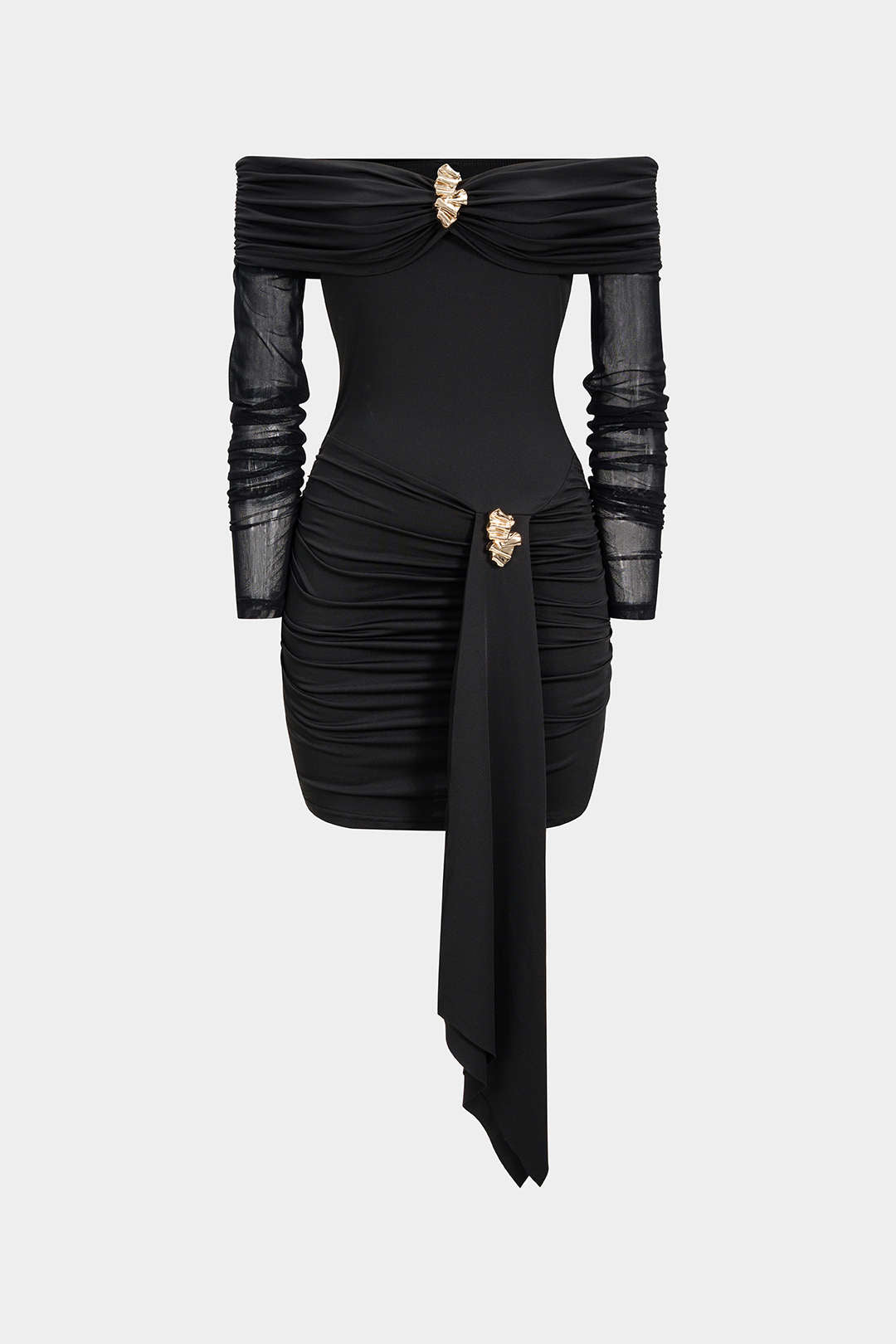 Bu işlemeli, omuzları açık mini elbise, Vandoria kadınının gardırobuna çarpıcı bir zarafet katıyor. Büzgülü silüeti figürü vurgularken, omuzları açık yaka ve incelikli işlemeler dikkat çekici bir odak noktası oluşturuyor. Unutulmaz akşamlar ve iddialı anlar için tasarlanan bu elbise, cesur kadınsılığı incelikli bir zarafetle birleştiriyor. Zarafet ve özgüvenle dikkat çeken kadınlar için öne çıkan bir parça.