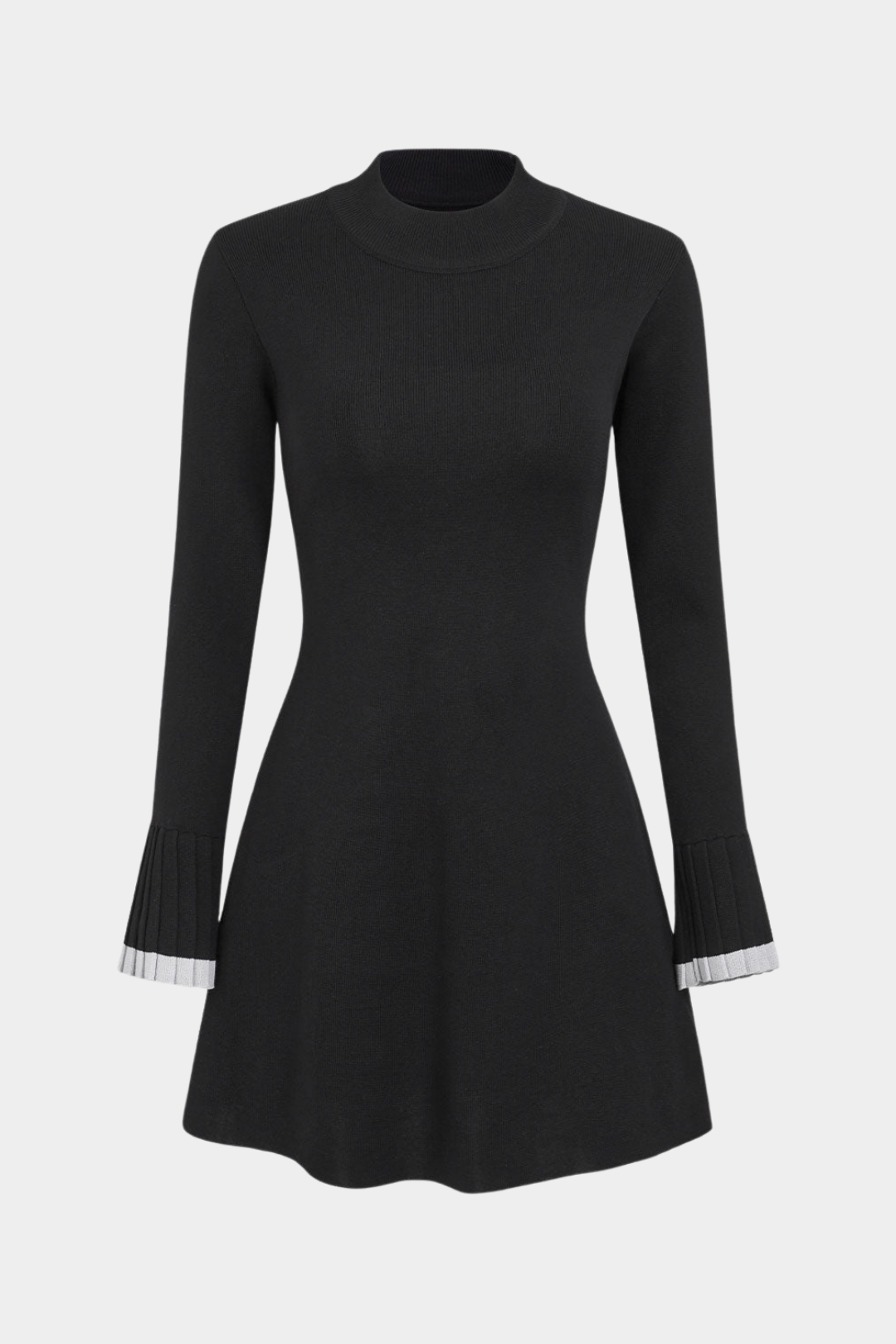 Bu mini elbise, vücuda oturan üst kısmı ve yumuşakça genişleyen eteğiyle modern zarafeti tanımlıyor. Uzun kolları ve sade yakası, yapı ve kadınsılık arasında incelikli bir denge oluştururken, esnek örgü kumaş vücuda rahatlıkla oturuyor. Şehir günleri veya şık akşam görünümleri için mükemmel olan bu elbise, Vandoria kadınının kendinden emin sadeliğini yansıtan zamansız bir parça.