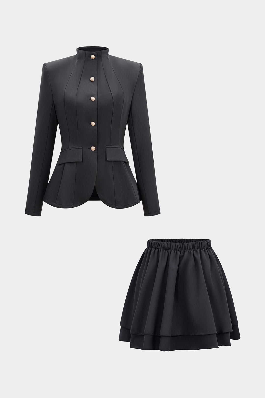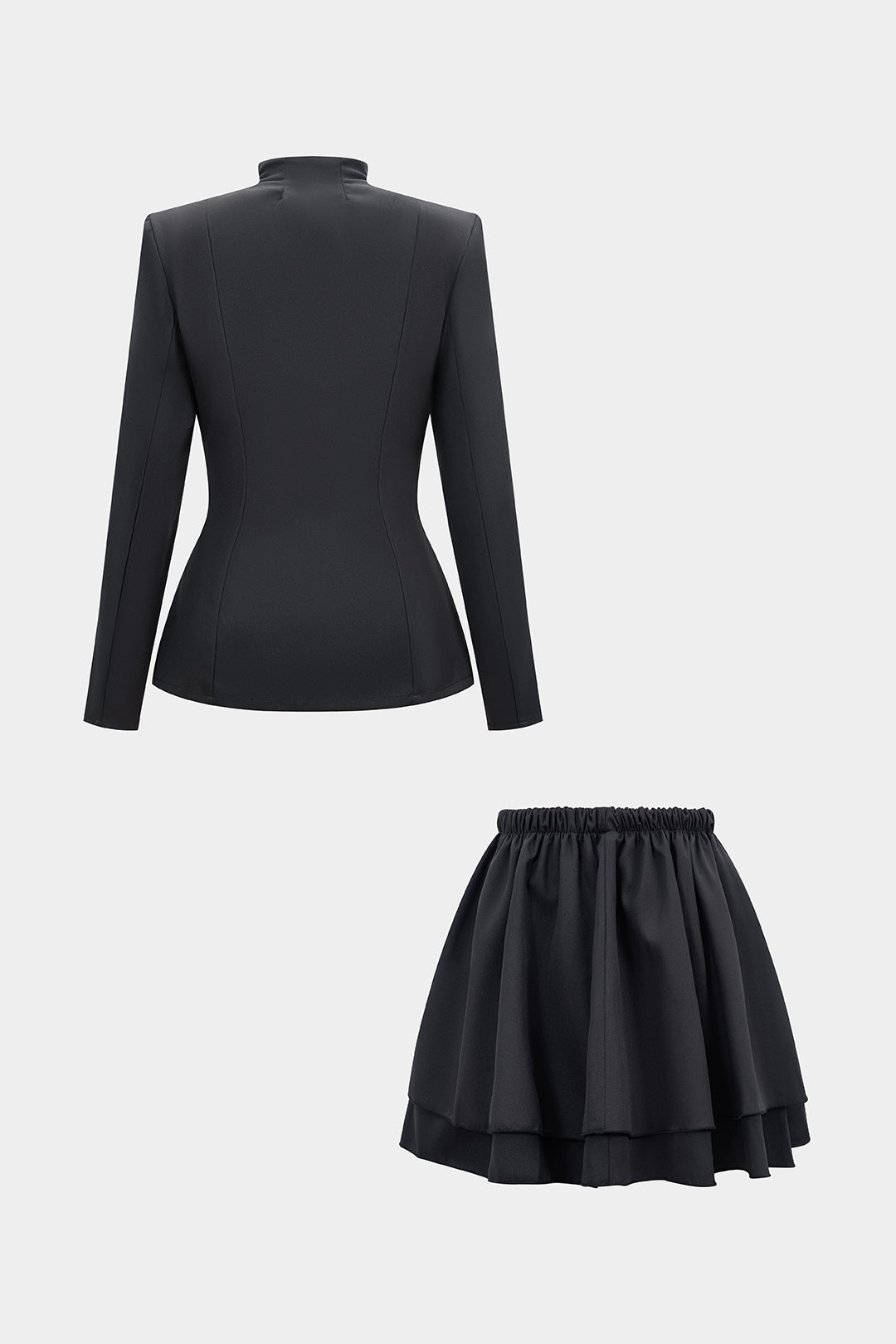 Özel dikim ceketi ve yumuşak katmanlı eteğiyle, güçlü ama zarif bir silüet yaratıyor; şehir günleri, şık davetler ve stilin sözlerden önce geldiği anlar için mükemmel.