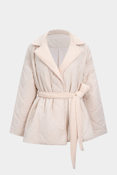 Cream Quilted Belted Jacket